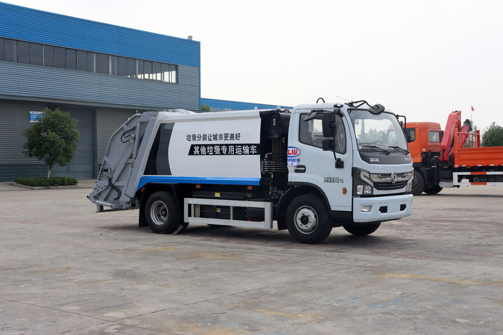 四、其他說明: 東風凱普特純電動二類底盤的基礎上,加裝垃圾箱、垃圾填充器、液壓系統,由機械、液壓(氣路)、電器三部分合為一體的專用垃圾處理、轉運作業車。整車為全密封型,自行壓縮、自行傾倒、壓縮過程中的污水全部進入污水箱,徹底的解決了垃圾運輸過程中的二次污染,具有壓力大、密封性好、