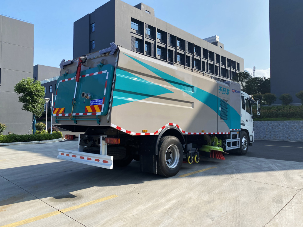 該車特點 東風天錦純電動洗掃車是我公司開發的新一代環衛產品,采用二類載貨汽車純電動底盤改裝。具有路面洗掃、清掃、清洗,可清洗路沿,路緣石立面、前角噴、后噴霧,高壓噴槍可清洗路標、廣告牌等功能。選裝低壓灑水系統時,可進行低壓前對沖或鴨嘴沖洗。