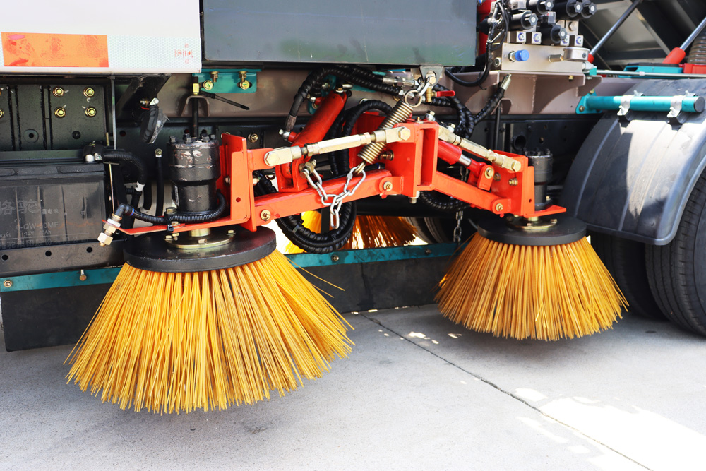 5、左右立掃為雙掃盤。3個高度可調的吸嘴輪,能多方面調整和保證吸嘴與路面間的合理間隙。