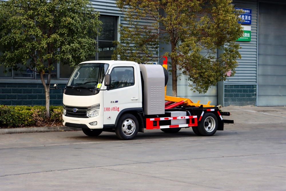 四、其他說明: 福田領(lǐng)航純電動車廂可卸式垃圾車是在純電動二類底盤的基礎(chǔ)上,加裝垃圾箱勾臂、液壓系統(tǒng),由機械、液壓(氣路)、電器三部分合為一體的專用垃圾轉(zhuǎn)運車。采用電機帶動液壓油泵,液壓閥控制液壓油缸,效率高,噪音小,操作方便。