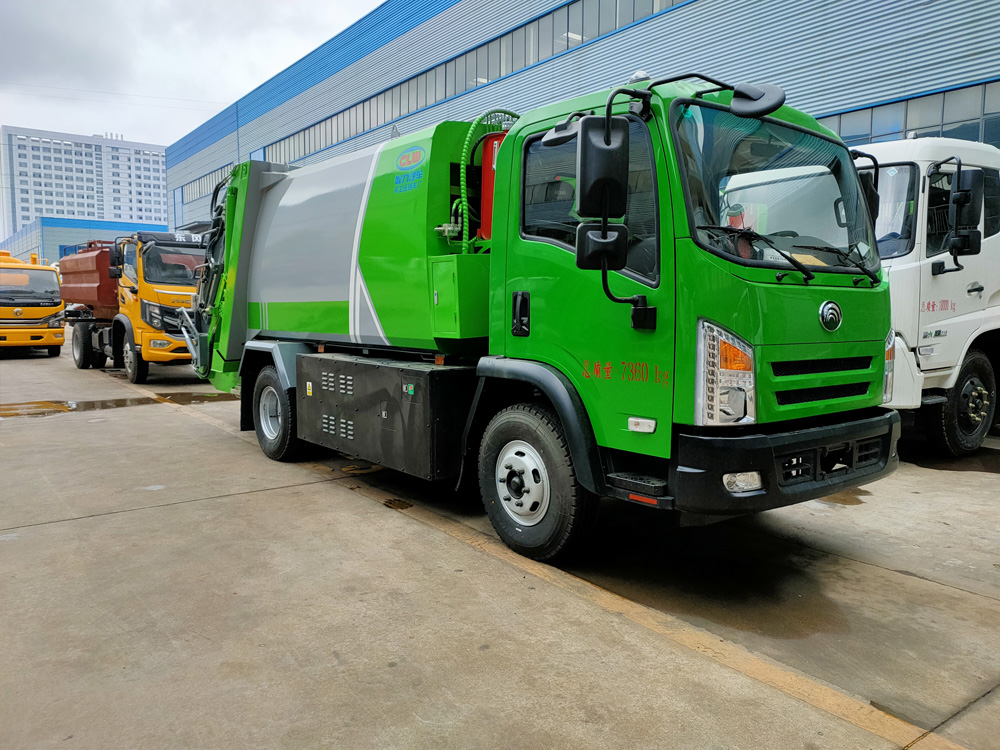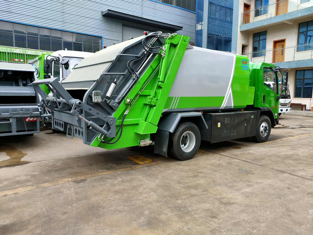 6. 方便的操作控制,作業(yè)控制盒分別安裝在駕駛室內(nèi)和車尾右側(cè),左側(cè)帶緊急停止按鈕,配備遙控器,駕駛室內(nèi)的作業(yè)控制盒可控制推擠卸料和選擇操作模式(如自動(dòng)或手動(dòng)),車尾的作業(yè)控制盒則控制壓填機(jī)構(gòu)和翻桶機(jī)構(gòu)的作業(yè),使用操作十分方便。特別是在垃圾填埋場(chǎng),作業(yè)人員無(wú)須下車即可完成卸料和污水排放。