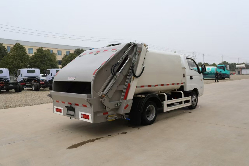 四、其他說明: 涂裝采用噴粉加烤漆工藝。箱體容積3 立方米,為高強度鋼制作的弧形無泄漏船型箱體,頂部有刮滑板,防止垃圾泄漏和異味擴(kuò)散。液壓系統(tǒng)采用國產(chǎn)油缸、睿宸油泵、揚州中梅多路閥。后帶翻桶架,可掛 2 只國標(biāo) 240L 方塑料桶,提升機帶無線遙控。填裝器舉升油缸帶平衡閥,帶氣動密封蓋,填充器底部有污水箱,還配備作業(yè)后支腿和電控限位感應(yīng)系統(tǒng)。