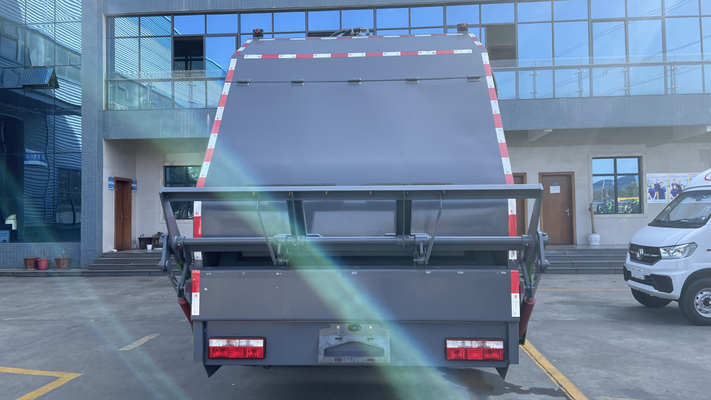 1、該車主要專用裝置由箱體、壓縮系統(tǒng)組成,用于生活垃圾的收集與清運(yùn);