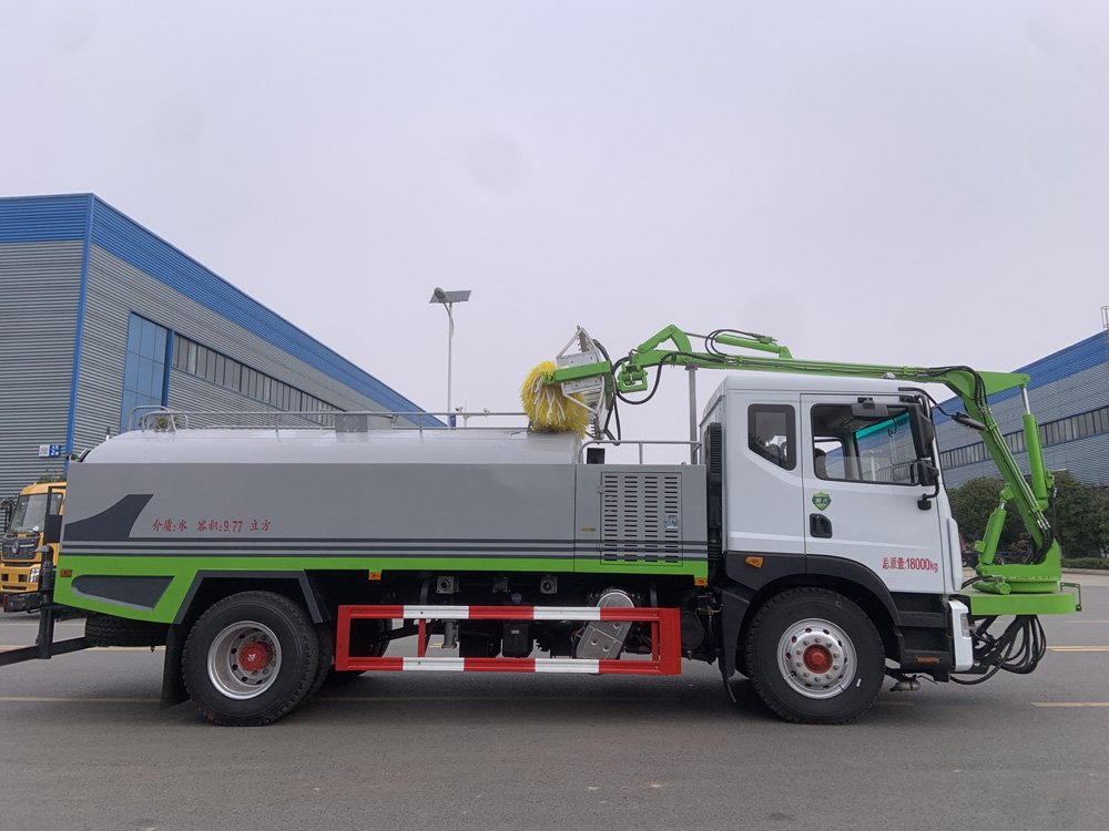 隧道清洗車由底盤,罐體、機械臂、水泵、噴嘴,清洗刷、一體完成工作。機械臂可359°旋轉(zhuǎn),所有的操作都在駕駛室完成。