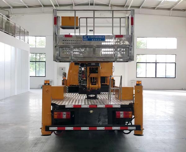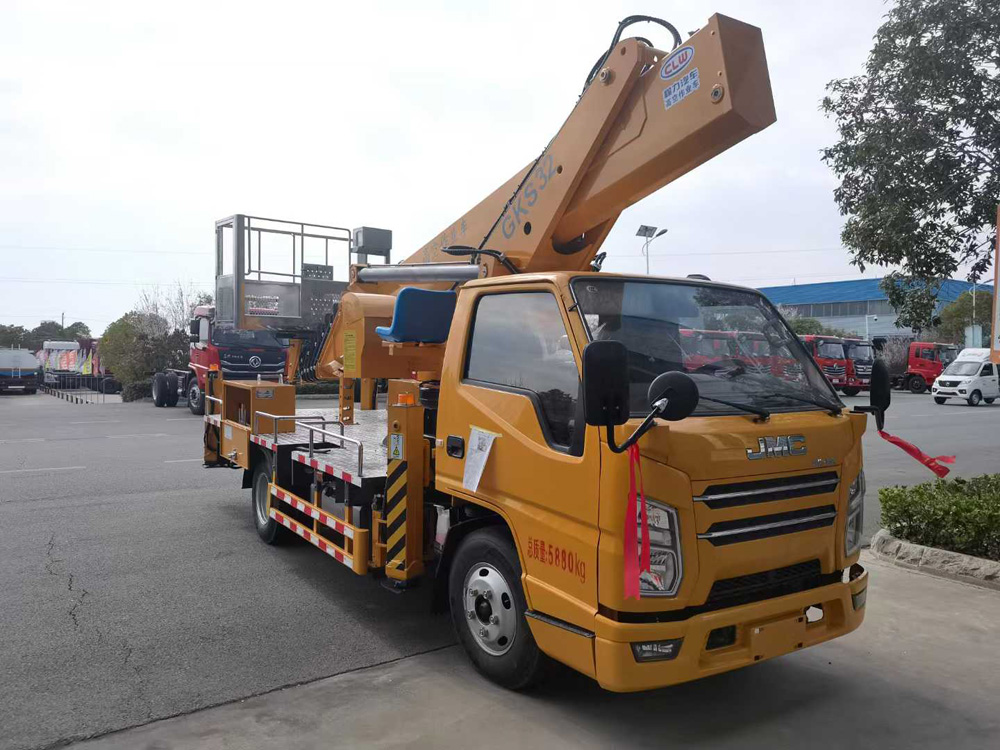 四、其他說明: 江鈴順達32米直臂高空作業車,該車用于搶修電力,通訊,路燈等高空作業,專用裝置為作業臂;防護材料:Q235B碳鋼,連接方式:側防護與后防護均采用焊接連接