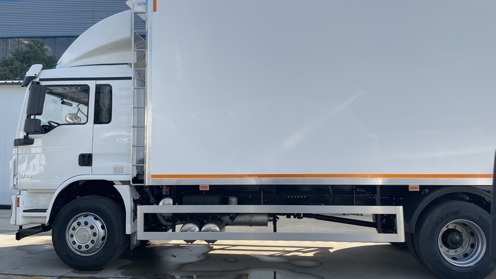 SHACMAN陜汽德龍8米冷藏車可在廂體頂部選裝軌道肉鉤、及在廂體底部選裝T型通風(fēng)槽
