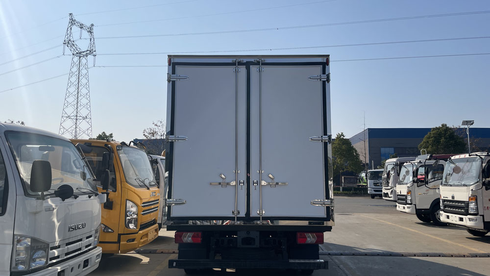 江鈴凱運(yùn)4米冷藏車(chē)可在廂體頂部選裝軌道肉鉤、及在廂體底部選裝T型通風(fēng)槽