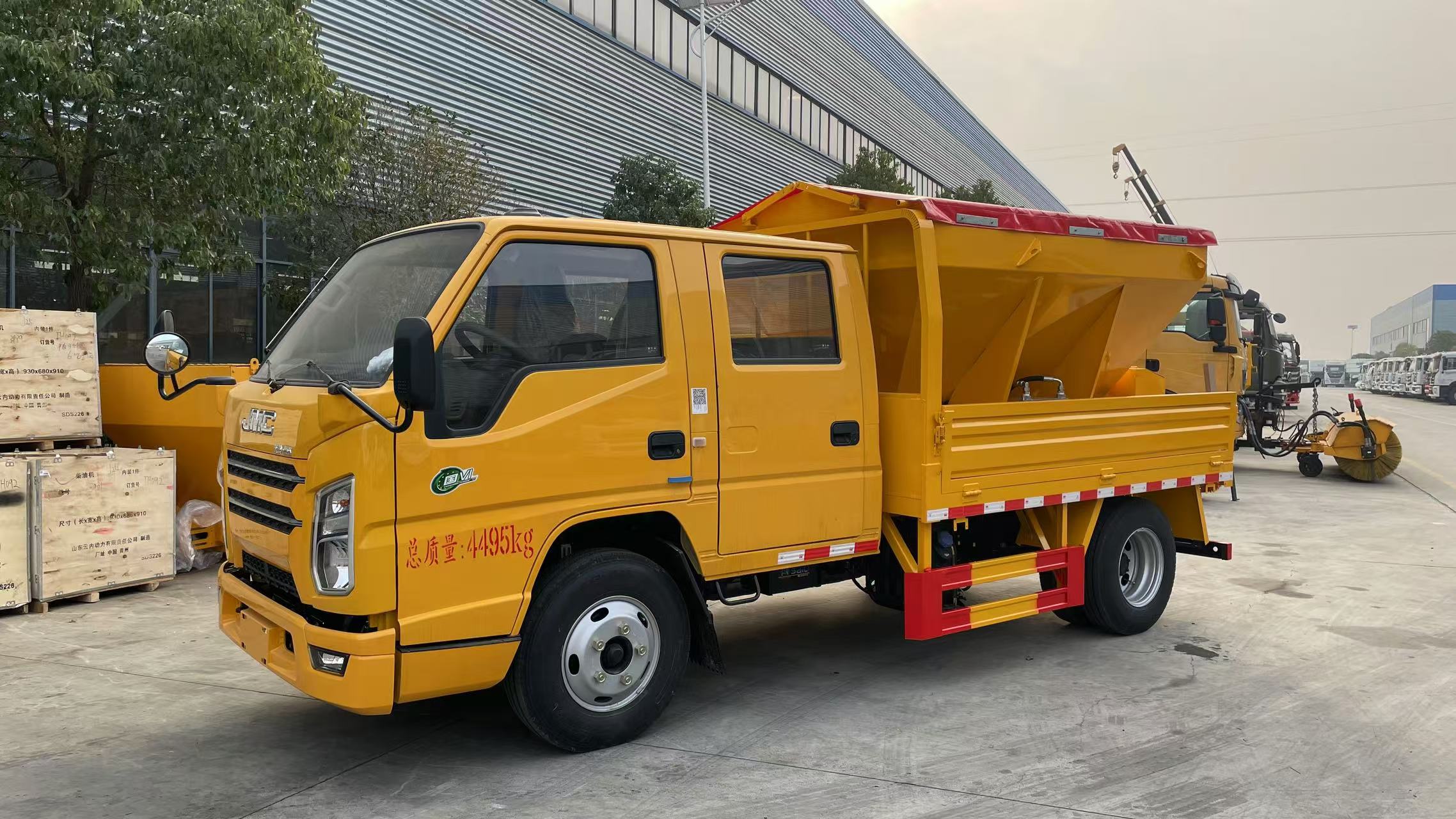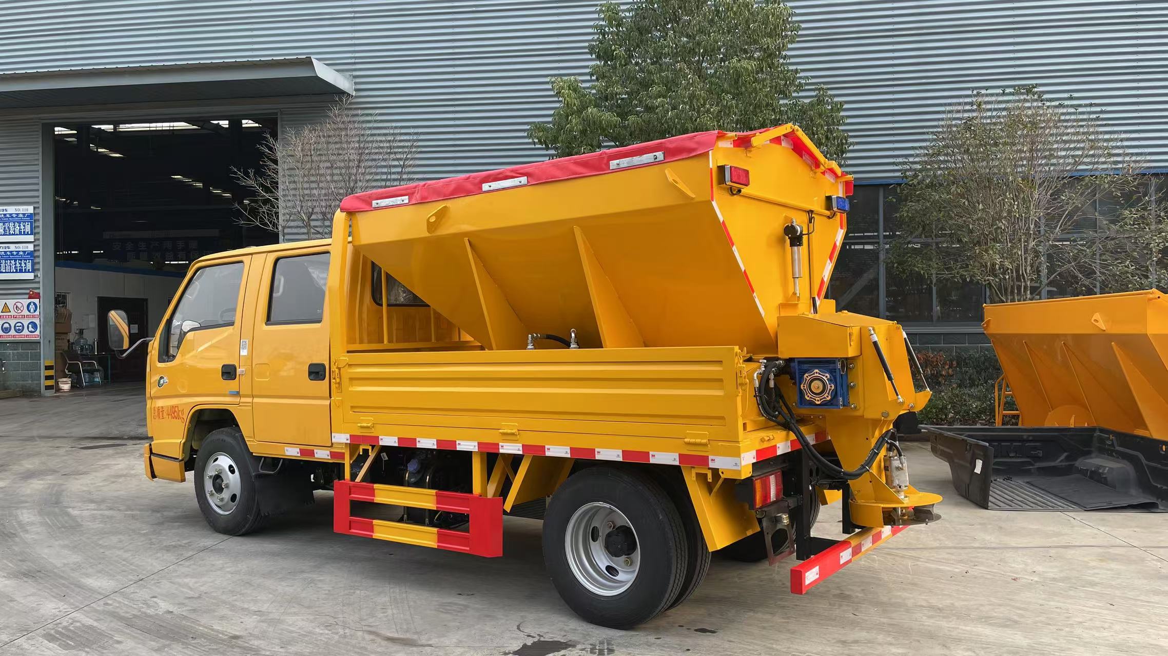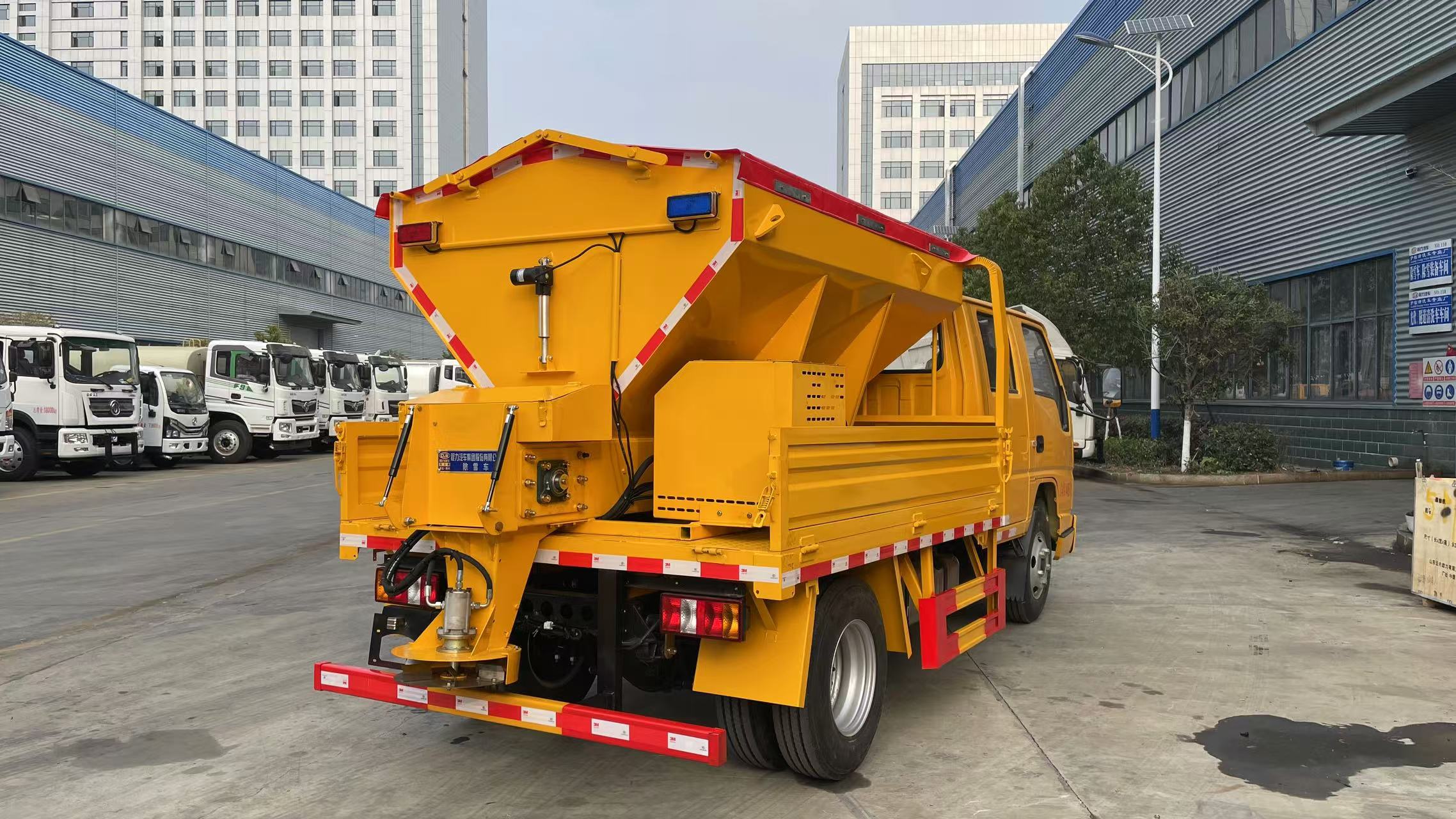 四、其他說明: 該車用于冬季撒布融雪劑,專用裝置為撒布機; 僅選用3360mm軸距底盤; 側(cè)后防護材料:Q235,連接方式:左右側(cè)及后下部防護均采用焊接連接, 后防護截面尺寸(mm):100×50,下邊緣離地高410mm;