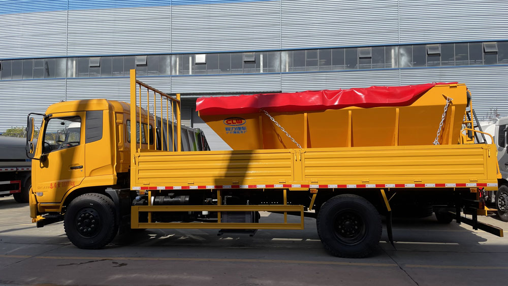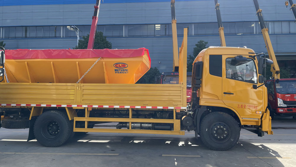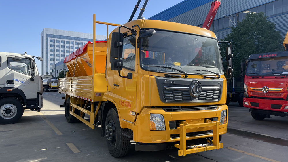 一、底盤配置: 采用東風(fēng)天錦DFH1180EX8車身,配置玉柴D6.7NS6B230發(fā)動機169/230馬力,國六排放標(biāo)準(zhǔn),軸距4200,4500,4700,(mm),整備質(zhì)量9噸,額定載質(zhì)量8.805噸,五擋變速箱,帶動力轉(zhuǎn)向,帶原廠空調(diào),該車用于冬季撒布融雪劑;專用裝置為撒布機, 2.前伸尺寸均為160mm; 3.側(cè)防護所用材料為Q235,連接方式為焊接,后部防護所用材料為Q235,離地高度為400mm; 該車上黃牌,城區(qū)道路請注意限行標(biāo)識。