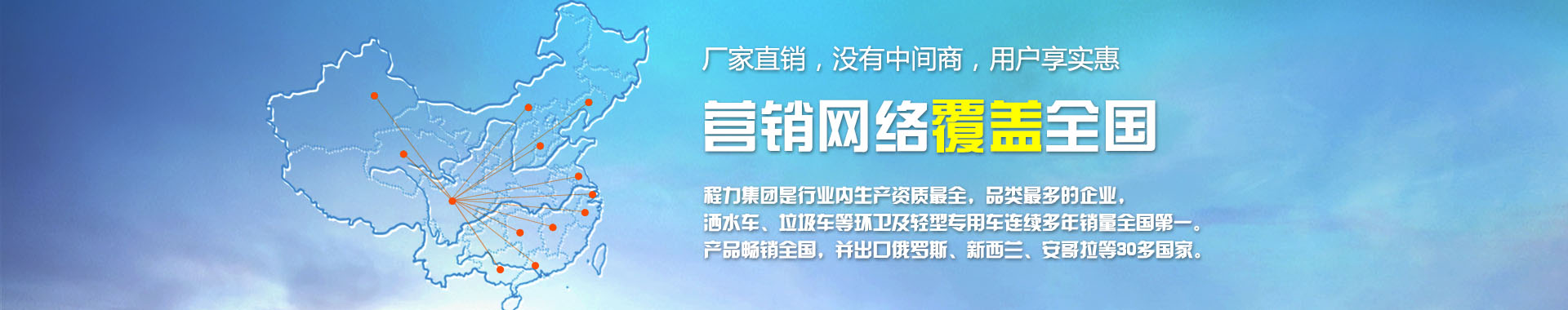 我公司致力于開發(fā)生產(chǎn)銷售專用汽車為已任,為您量身打造方便實用,耐用的專用汽車,其主導(dǎo)品種有園林綠化灑水車、環(huán)衛(wèi)灑水車、油罐加運油車、吸糞車、吸污車、擺臂、掛桶、密封式垃圾車、廂式運輸車、消防車、半掛車、自卸車、水泥車、隨車吊等八大系列100多個品種300多個車型。同時批發(fā)東風(fēng)、解放、福田等各種二類底盤。目前我公司銷售網(wǎng)絡(luò)基本已覆蓋全國各地,具體如下。