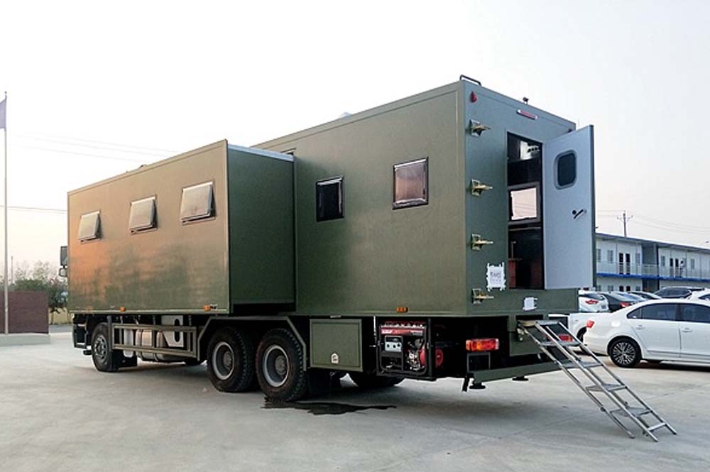 主要專用裝置發(fā)電機,折香床鋪等,選裝配置衛(wèi)浴間、凈水箱、外掛式。空調(diào)、衛(wèi)星天線、吸頂電視、換氣扇、車廂左、右可選裝擴展機構箱體、車廂左、右兩側、后部增加或封閉窗戶、車門、車輛顏色可選裝裝有具有衛(wèi)星定位的行車記錄儀等,不擴展可供8-12住宿,擴展后可供8-28人住宿。(可根據(jù)客戶要求改裝)